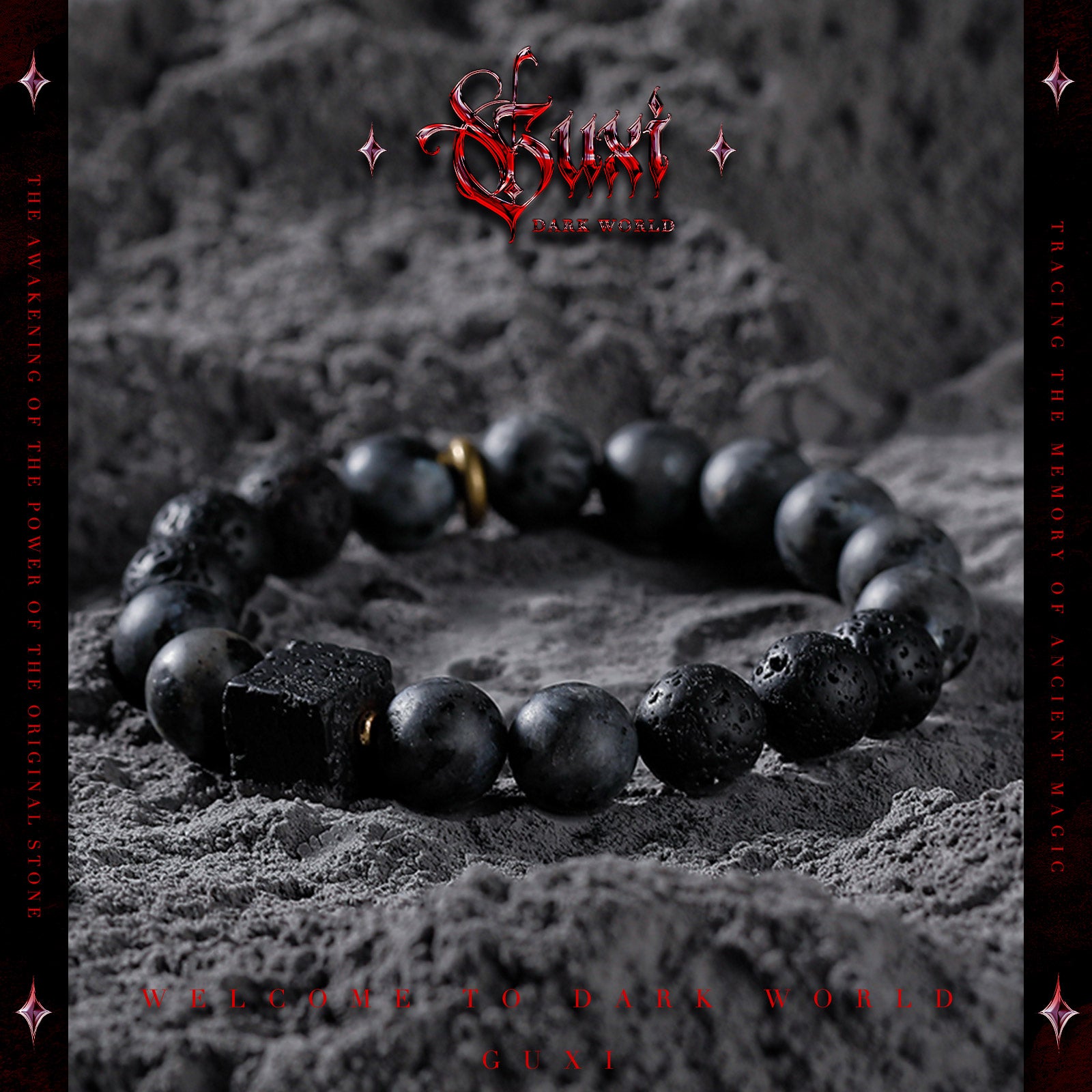 These two beaded bracelets are made up of lava rocks that are full of a sense of power and rare black amphiboles with lamellar flashes, while the other beaded bracelet is made up of lava rocks and matte - foggy black onyx. Each gemstone on the bracelet has a profound meaning. Black amphibole bracelets symbolize creativity. Black onyx has the effect of enhancing concentration, and lava rocks symbolize the vitality of life. They continuously inspire the wearer to move forward bravely.