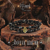 This double-layered beaded bracelet is composed of rare snow obsidian with intricate, mysterious textures, tough black coconut shell, and powerful lava rock. The obsidian bracelet is regarded as a symbol of protection, offering defense against negative energies. The lava rock, on the other hand, is a symbol of life and vitality, constantly stimulating the wearer.