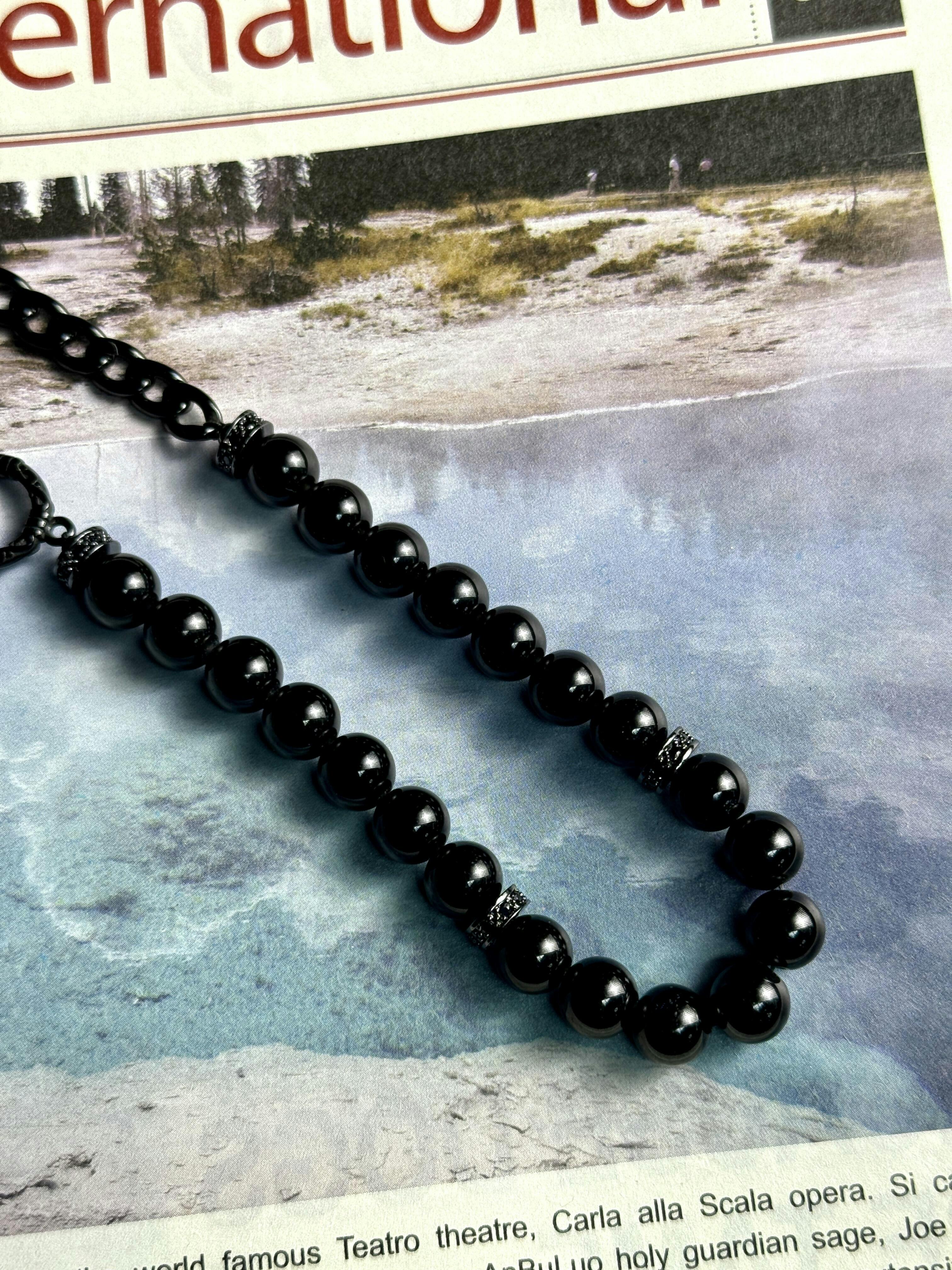 The necklace is mainly made of obsidian and stainless steel. Obsidian is regarded as a guardian that can absorb negative energy, symbolizing the power of self-precipitation and resistance to external interference in a bewildered world. The stainless steel material represents firmness and tenacity. Its cold metallic texture and solid structure are like the unwavering belief during a lost journey, which will not be easily broken by difficulties. The inlaid zircon spacer ring in the middle is just like a deep vortex in the darkness, emitting a unique faint glow. It is like a weak glimmer of faith in a state of being lost. Although not dazzling, it is sufficient to keep shining in the inner darkness. The overall design adopts simple yet layered elements, making the necklace present a sense of dynamism and stability. It enables the wearer to explore and persevere with a balanced state of mind when facing the lost dilemmas in life, showing unique fashion taste and inner strength.