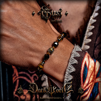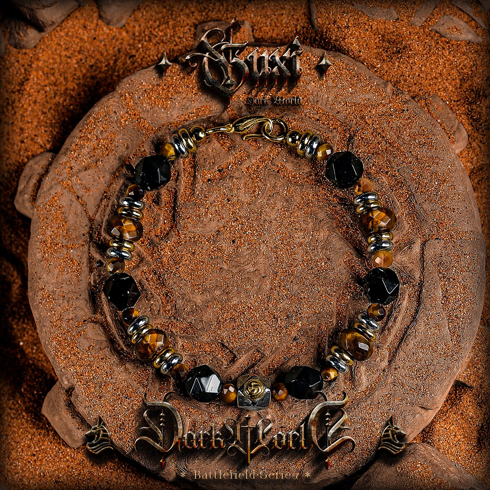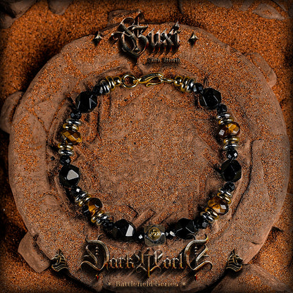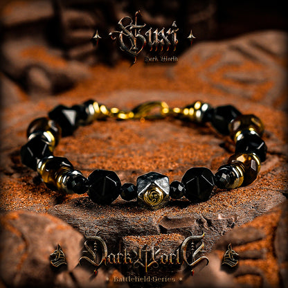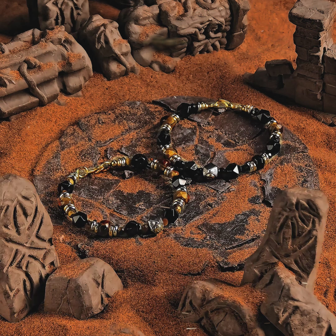 These two beaded bracelets are meticulously crafted from deep-gloss obsidian, paired with the shimmering yellow-brown silky patterns of tiger eye and the unique crystals of black spinel. Each gemstone on the bracelet holds deep meaning: the obsidian and black spinel bracelet symbolizes protection, while the tiger eye bracelet is seen as a symbol of confidence. Together, they continuously inspire the wearer to move forward with courage.
