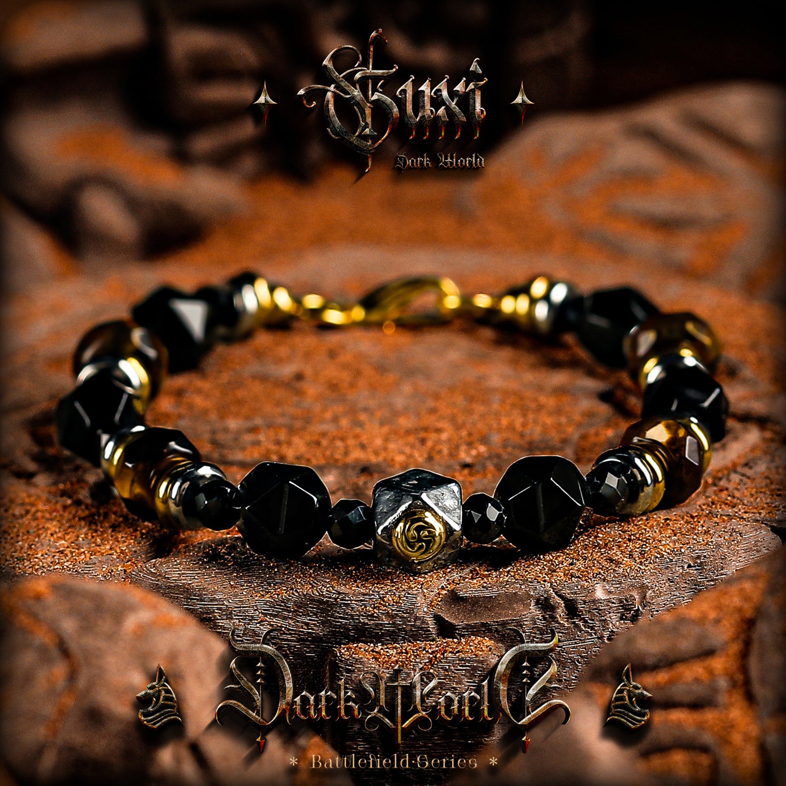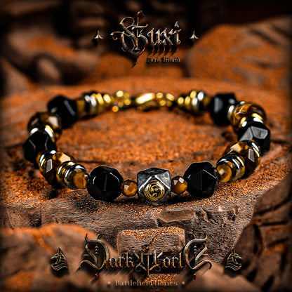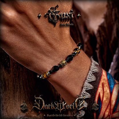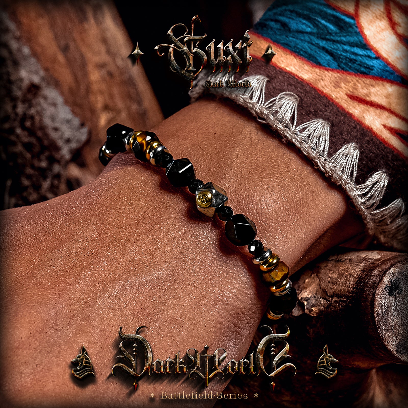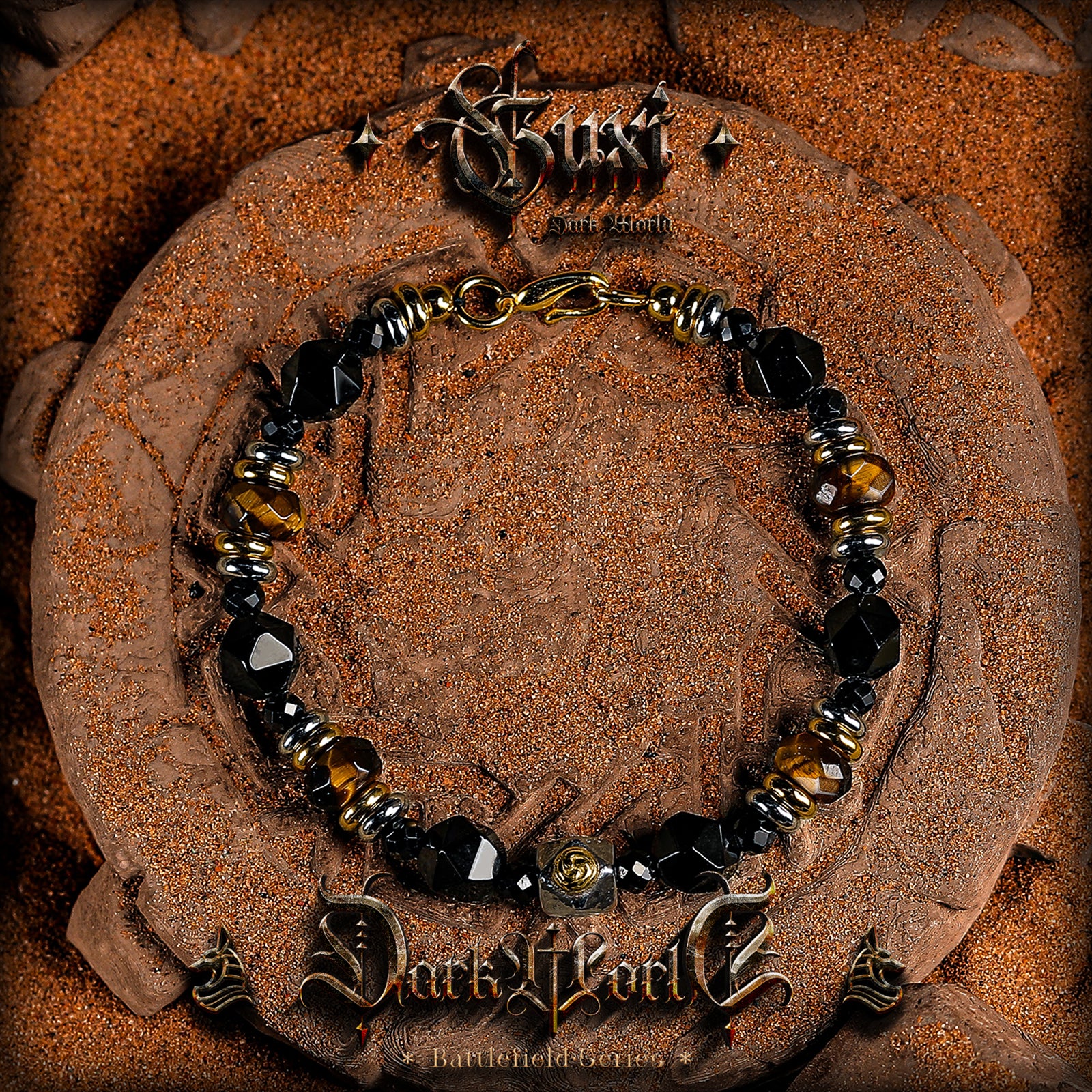 These two beaded bracelets are meticulously crafted from deep-gloss obsidian, paired with the shimmering yellow-brown silky patterns of tiger eye and the unique crystals of black spinel. Each gemstone on the bracelet holds deep meaning: the obsidian and black spinel bracelet symbolizes protection, while the tiger eye bracelet is seen as a symbol of confidence. Together, they continuously inspire the wearer to move forward with courage.