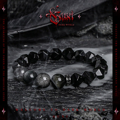 These two beaded bracelets with irregular designs are meticulously crafted from obsidian and silver obsidian, paired with different kinds of tiger's eye stones. The obsidian bracelet is regarded as a symbol of protection and can offer protection and defend against negative energy. The tiger's eye stone bracelet is seen as a symbol of courage and strength and can give the wearer powerful psychological support, helping the wearer show their unique charm.